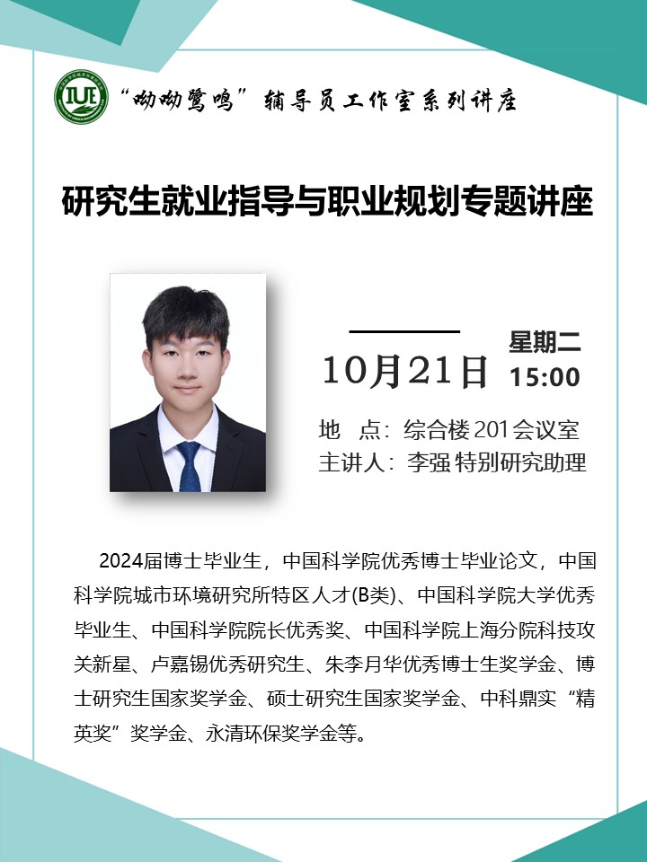為更好地推進畢業(yè)生的就業(yè)工作,10月21日下午,教育處邀請城市環(huán)境所2024屆博士畢業(yè)生,現(xiàn)任城市環(huán)境研究所特別研究助理,城市環(huán)境研究所特區(qū)人才(B類)李強老師,做研究生就業(yè)指導(dǎo)與職業(yè)規(guī)劃經(jīng)驗分享。會議由教育處任可欣主持,所內(nèi)研究生及寧波站研究生通過線上和線下參加此次活動。