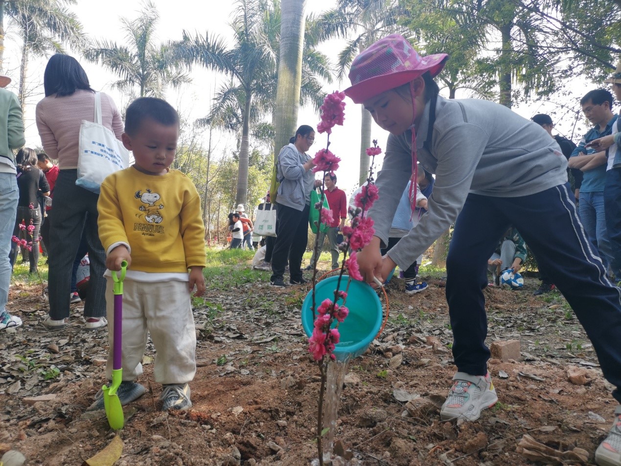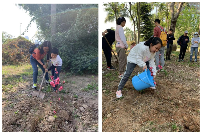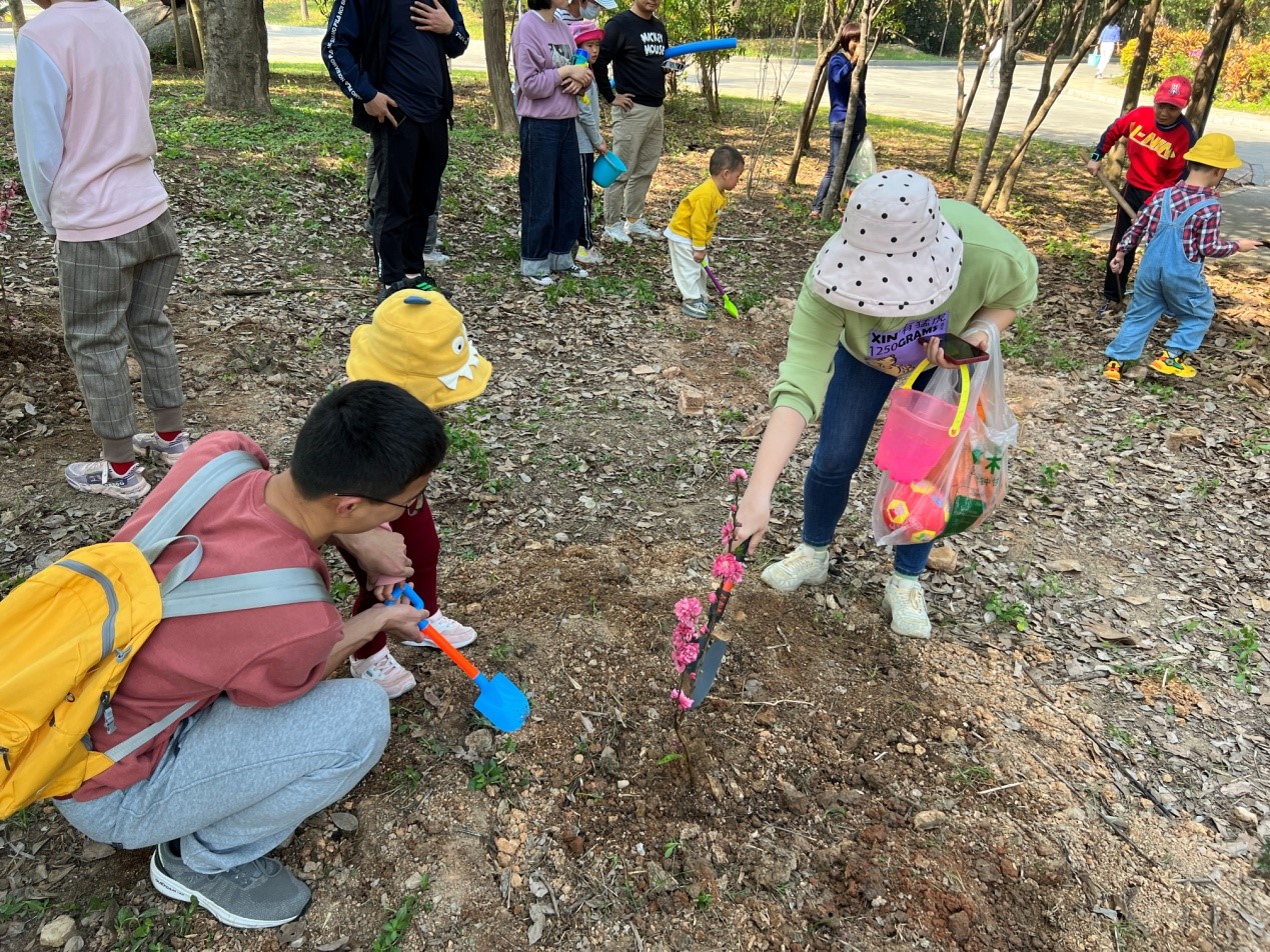 在研究所所石兩側(cè),婦委會精心準備了桂花樹和桃花樹,孩子們在父母的帶領下,帶上鏟子和小水桶,興致盎然地開始植樹。大家全然不顧沾在鞋上、身上的泥土,或用工具鏟土、或扶正樹苗、或用水桶澆水,現(xiàn)場一片熱火朝天,大家種下的一株株桂花樹和桃花樹點綴了春日的城市環(huán)境研究所,為園區(qū)增添了一抹明亮的色彩。