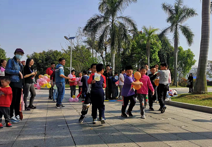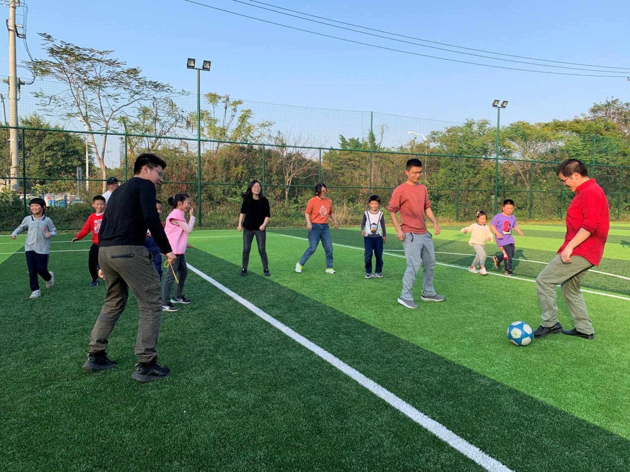 植樹過后,孩子們又先后參加了“夾氣球跑”、“蒙眼打棒”、“親子足球”等游戲,孩子們在場上奮力拼搏,父母們在場下加油吶喊,素日嚴肅寧靜的園區(qū),在一陣陣歡聲笑語中變得熱鬧起來。