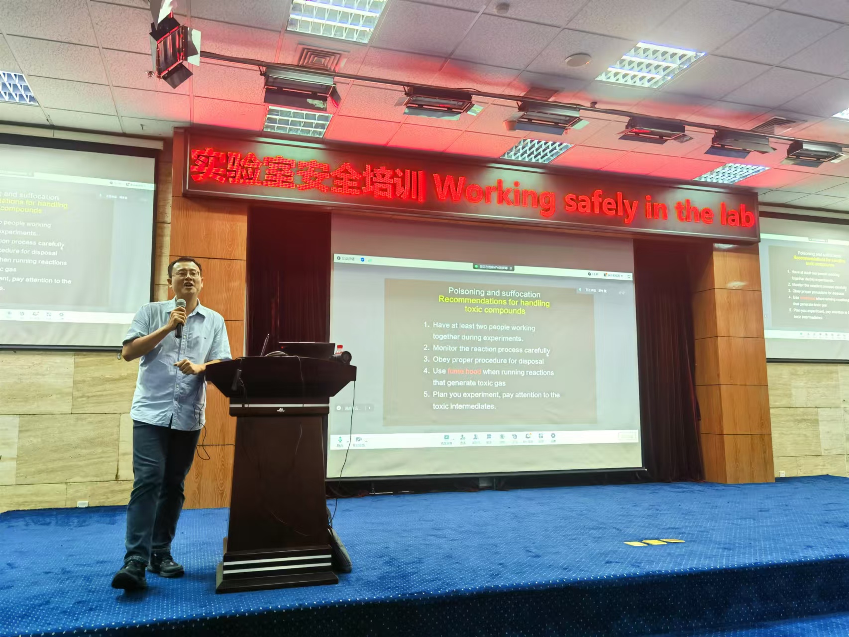 為加強(qiáng)實驗室安全管理,提升研究生安全防范意識和技能,10月22日,研究所邀請中國科學(xué)院福建物質(zhì)結(jié)構(gòu)研究所王維研究員作《Working safety in the lab》的安全培訓(xùn)報告,培訓(xùn)會由教育處胡冬雪主持,在所的中外籍學(xué)生參加了本次培訓(xùn),寧波站學(xué)生線上參與活動。